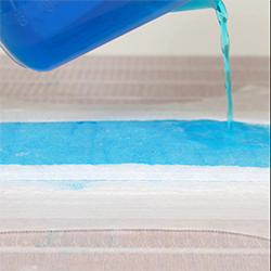 Vitesse d'absorption : Lorsque le liquide est versé, il doit être rapidement couches pour bébé absorbées et uniformément, sans accumulation à la surface.